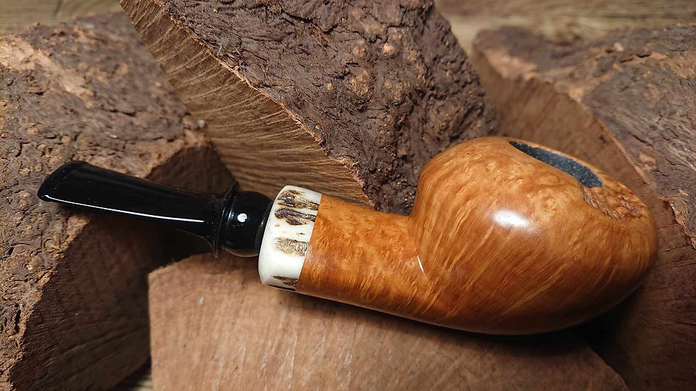 I work exclusively with Italian (Mimmo) and Greek Plateaux or Ebauchon briarwood and I use natural materials for the decorations: different domestic and exotic woods, and various types of horns and antlers.